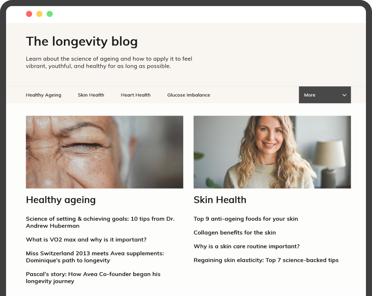 The Avea longevity magazine has one mission: to empower you with cutting-edge research, practical wellness tips, and inspiring stories to help you navigate your longevity journey. We believe in science-based solutions that enhance your health span, bringing you closer to a life filled with vitality and purpose.