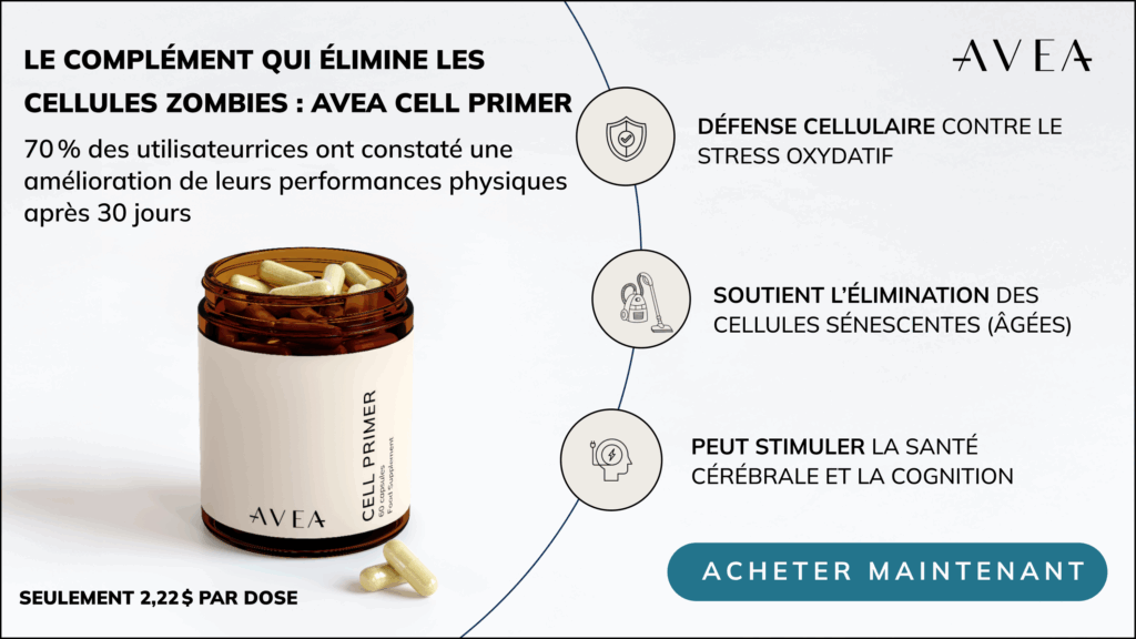 Les cellules zombies accélèrent le vieillissement, mais en modifiant votre mode de vie, en adoptant une alimentation ciblée et en prenant des compléments alimentaires avancés tels que AVEA Cell Primer, vous pouvez ralentir le vieillissement biologique, améliorer vos performances et protéger votre santé à long terme.