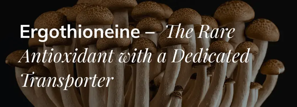 Ergothioneine is an amino acid derivative with antioxidant properties so unique that humans have evolved a dedicated transporter (OCTN1) to absorb and distribute it. It preferentially accumulates in mitochondria and stem cells, where protection is most needed.