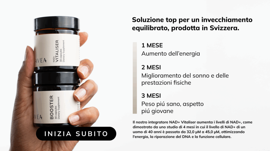 - Aumentare energia e resistenza: i precursori del NAD+ migliorano la funzione mitocondriale, offrendo più vitalità.
