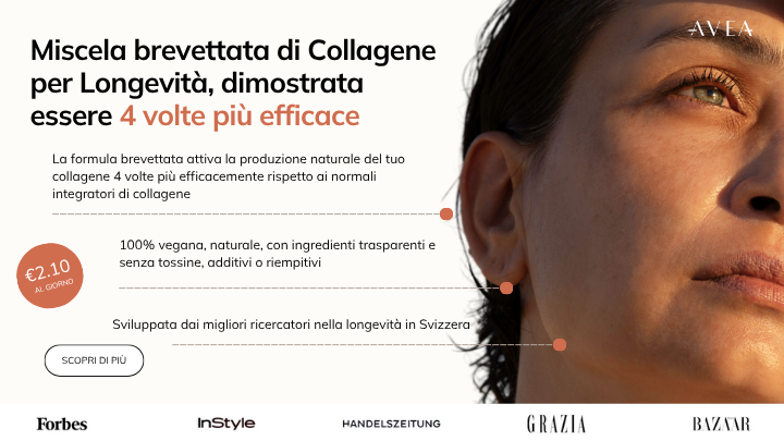 Il Collagen Activator di AVEA contiene Colgevity™, un complesso brevettato, vegano e clinicamente testato di aminoacidi, sviluppato in collaborazione con l’ETH di Zurigo.