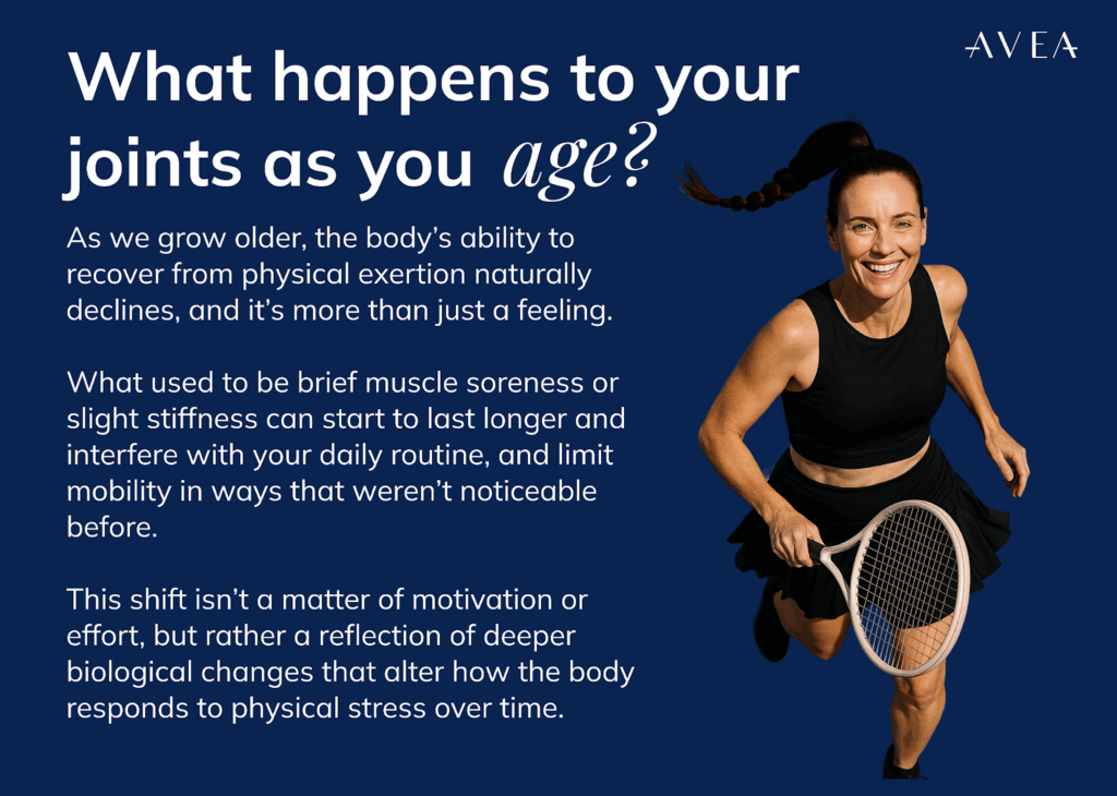 When we are younger,common strategies like rest, stretching, or a post-workout protein shake might be enough to support recovery. But as we age, the biology of joints changes significantly and with it, the demands of maintaining mobility, flexibility, and comfort.