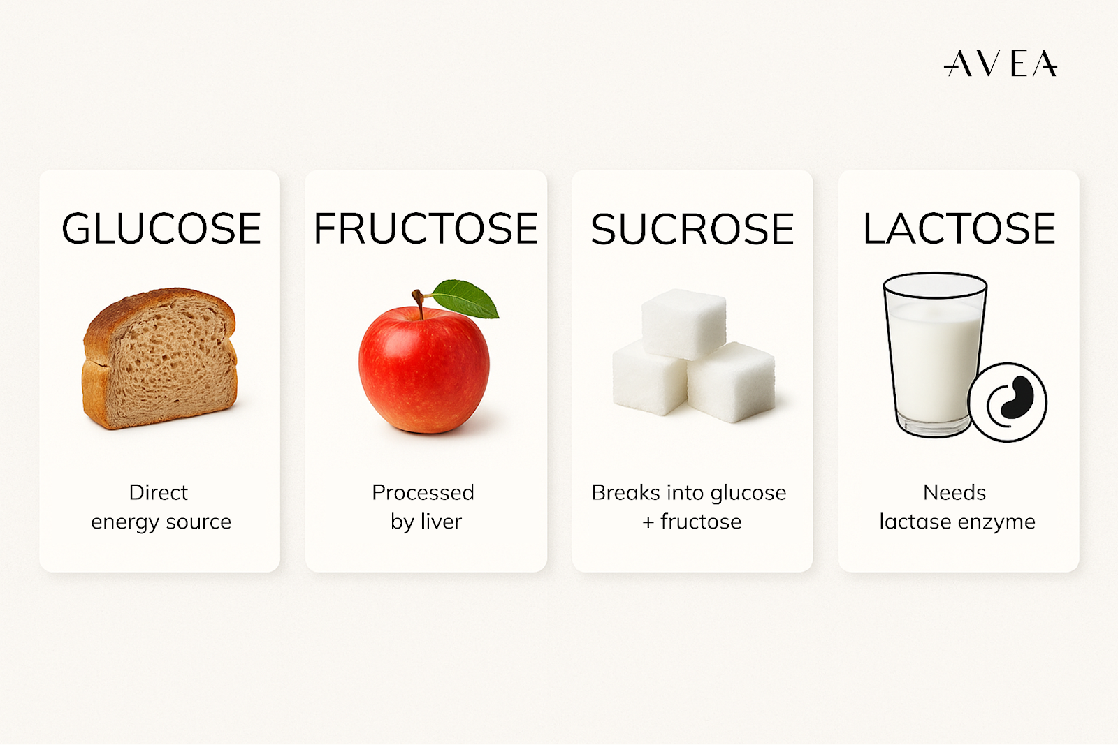 Each type of sugar behaves differently in the body, but ultimately, glucose is the most directly linked to blood sugar levels and energy regulation.