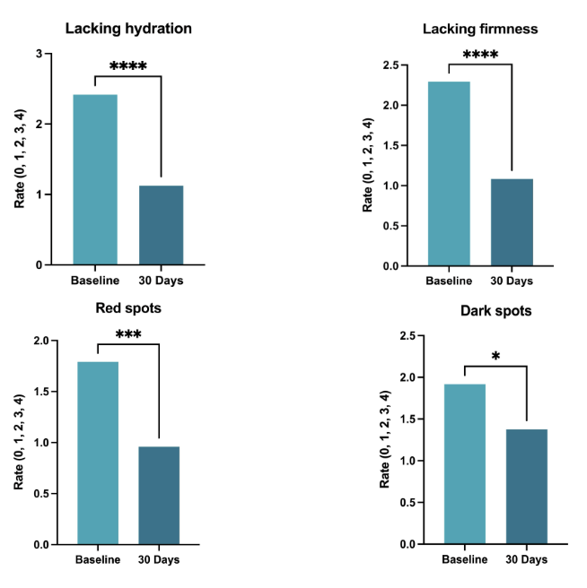 • Sun Damage (UV Spots): A significant 42.9% reduction in UV spots within the first month.