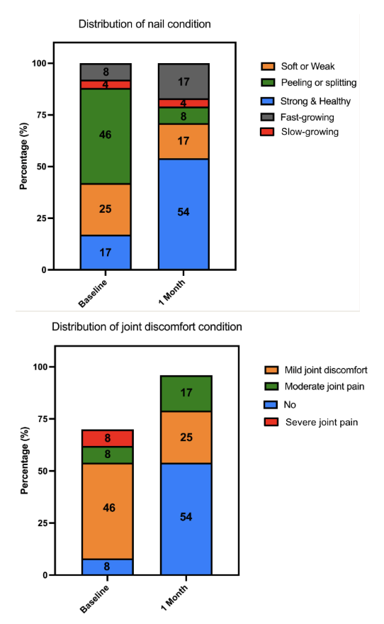 Collagen is a key structural protein essential not only for promoting skin health, but also for supporting strong nails and healthy joints. Therefore, we asked participants to rate the conditions of their nails and joints before and after Collagen Activator intake.