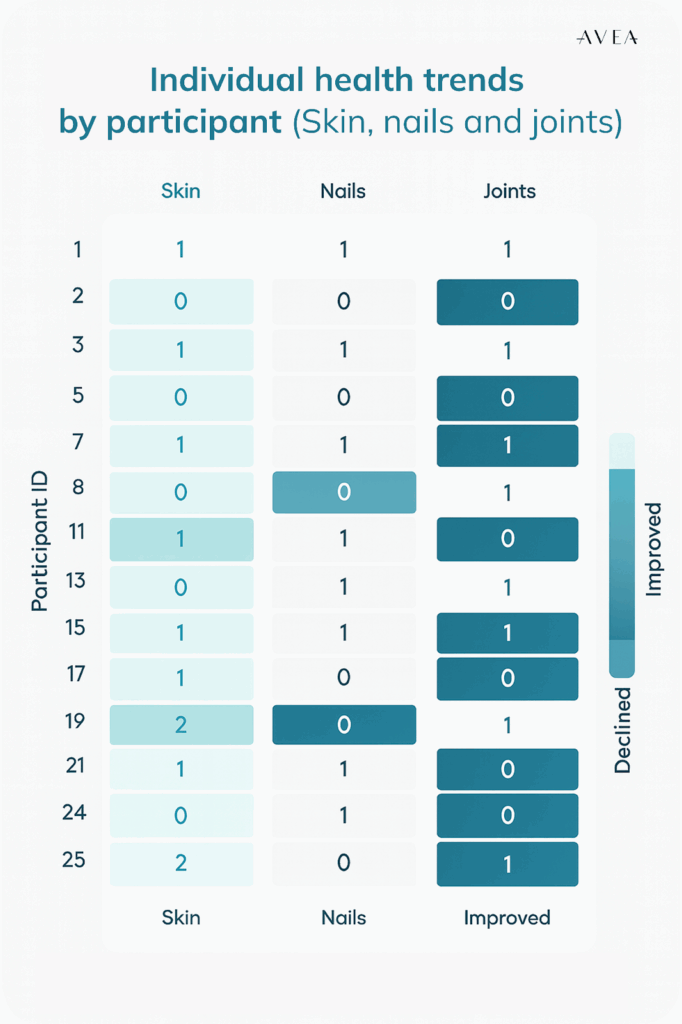 This 30-day customer study underscores the multidimensional benefits of regular use of AVEA’s Collagen Activator in supporting visible and tangible improvements in skin, nail, and joint health.