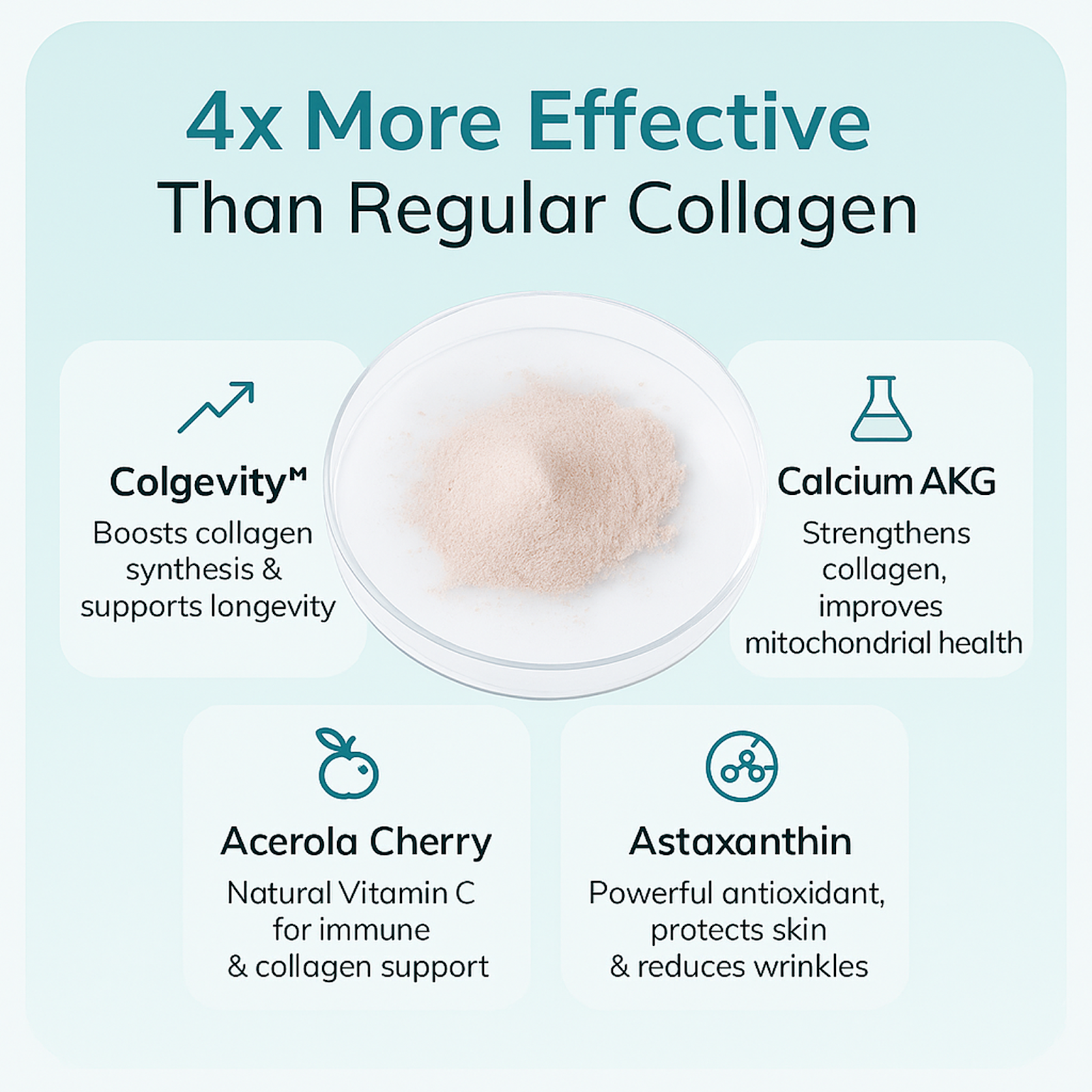 Recognising this, skincare experts agree that true skin transformation must start from within. This has led to a boom in collagen supplements. The problem? Not all supplements are created equal. Many are poorly absorbed or lack the key ingredients needed to activate your body’s own collagen-making machinery.